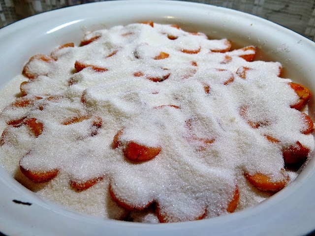вот таким образом дальше и продолжаем выкладывать абрикосы, пересыпая их